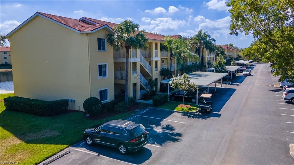 Don't miss this 3rd floor 3 bedroom, 2 bath end unit condo in the Key Royal community on Immokalee Rd in North Naples! This spacious condo features a screened balcony with a lake view and comes with a carport. No carpet in this home...there is tile in the main areas and luxury vinyl in the bedrooms. The kitchen has newer espresso cabinetry and stainless appliances. This ever-popular community features amenities including a large clubhouse, 24-hour exercise room, heated pool and spa, poolside tiki hut, car wash area, and garbage valet. This community also enjoys the benefits of an onsite property manager and security patrol. Key Royal is a well-maintained community with low condo fees, and an excellent location with plenty of shopping, new dining options and the NCH NE Hospital/Healthcare facility less than 5 minutes away! A public golf course is nearby, along with I-75 access, and it is a short 8 miles drive to the beach at Wiggins Pass State Park.